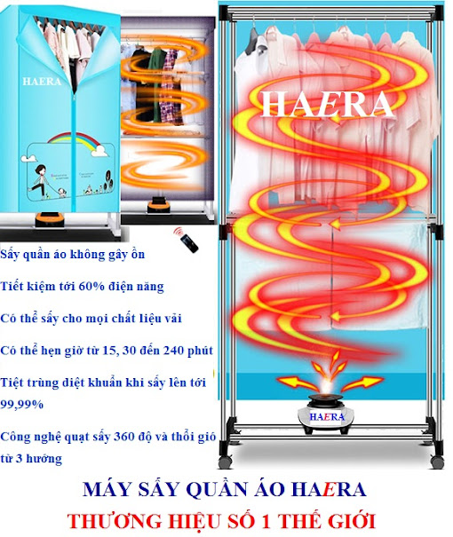 Công nghệ quạt sấy 360 độ và thổi gió từ 3 hướngVào những ngày mưa gió và ẩm ướt thì máy sấy quần áo Haera chính là phương pháp cứu cánh dành cho bạn. Với hệ thống sấy khô vô cùng thông minh chiếc máy sấy quần áo đa năng này giúp quần áo khô nhanh mà không cần đến ánh sáng từ mặt trời. Trang bị cùng nhiều nút tùy chỉnh cho bạn tha hồ lựa chọn